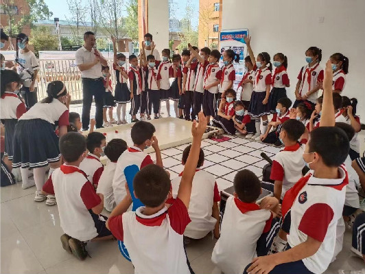 (中興學校學生參觀科普大篷車展品)