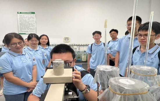 在隨后兩天實(shí)踐環(huán)節(jié),設(shè)置了植物科學(xué)課題探究、科學(xué)游園、參觀科學(xué)家精神教育基地等多個(gè)環(huán)節(jié)。營(yíng)員們走進(jìn)實(shí)驗(yàn)室,親身參與了一場(chǎng)別開生面的植物學(xué)探索之旅??蒲腥藛T首先為大家講解了微藻的基礎(chǔ)知識(shí),包括其生態(tài)價(jià)值、生長(zhǎng)特性及形態(tài)特征等。營(yíng)員們?cè)诳蒲腥藛T的指導(dǎo)下,通過實(shí)地采樣、設(shè)計(jì)實(shí)驗(yàn)、實(shí)驗(yàn)室操作、數(shù)據(jù)分析、成果匯報(bào)等環(huán)節(jié),完整地體驗(yàn)科學(xué)探究的一般流程,獲得真實(shí)的科學(xué)研究經(jīng)歷。我市學(xué)子撰寫的《從“藍(lán)色寶藏”到“生命密碼”——螺旋藻中藻藍(lán)蛋白的探索之旅》《肉眼可見的光合作用》兩篇報(bào)告贏得好評(píng)。