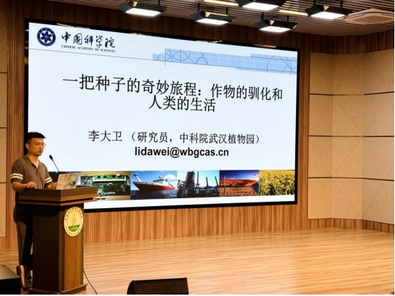 活動(dòng)在武漢植物園李大衛(wèi)研究員《一把種子的奇妙旅程:作物的馴化和人類的生活》的報(bào)告中拉開序幕。李大衛(wèi)研究員向營(yíng)員們介紹了武漢植物園在獼猴桃育種等領(lǐng)域的突破,以及我國(guó)在作物種質(zhì)創(chuàng)新方面的科研實(shí)力,講述了科學(xué)家們的愛國(guó)情懷和奉獻(xiàn)精神。他寄語(yǔ)在場(chǎng)學(xué)子,國(guó)家振興靠科技,科技創(chuàng)新靠青少年,希望同學(xué)們勤奮學(xué)習(xí),勇?lián)鷷r(shí)代使命。