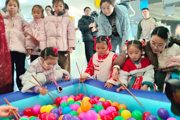 作為本次聯(lián)動(dòng)活動(dòng)的重要一站,襄陽(yáng)市科技館充分發(fā)揮場(chǎng)館優(yōu)勢(shì),將科學(xué)原理與節(jié)日民俗深度融合,打造了別開(kāi)生面的科普游藝項(xiàng)目。在“夾湯圓大挑戰(zhàn)”區(qū)域,五彩斑斕的海洋球池化身“巨型湯圓鍋”,親子家庭齊上陣,用特制長(zhǎng)筷小心翼翼地夾起“湯圓”。這項(xiàng)游戲不僅考驗(yàn)了參與者的手眼協(xié)調(diào)與耐心,更在歡聲笑語(yǔ)中傳遞了元宵佳節(jié)的團(tuán)圓寓意。一旁的“馬場(chǎng)捶丸”場(chǎng)地同樣熱鬧非凡,市民們手持球桿,瞄準(zhǔn)萌趣十足的門(mén)洞奮力擊球。這項(xiàng)融合了古代捶丸運(yùn)動(dòng)與現(xiàn)代游戲設(shè)計(jì)的活動(dòng),讓參與者在揮桿之間體驗(yàn)了一把“古代高爾夫”的樂(lè)趣,現(xiàn)場(chǎng)加油聲、歡笑聲此起彼伏。