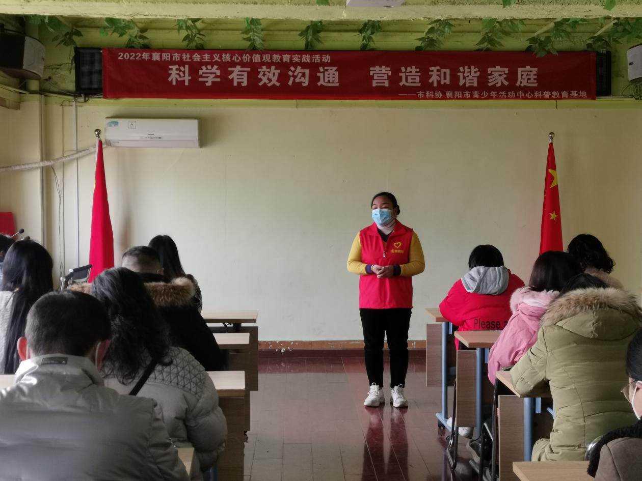 為了踐行社會(huì)主義核心價(jià)值觀,普及科學(xué)知識(shí),營(yíng)造有效溝通的和諧氛圍,2022年12月9日,襄陽市科協(xié)在市青少年活動(dòng)中心科普教育基地以公益課堂形式開展“科學(xué)有效溝通,營(yíng)造和諧家庭”社會(huì)主義核心價(jià)值觀活動(dòng)。