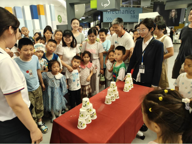活動(dòng)期間,創(chuàng)客工作室暢游星空、玩轉(zhuǎn)積木、紙杯飛行器等多個(gè)主題的“好玩的科技館”系列科普活動(dòng)如火如荼的開(kāi)展,科普劇場(chǎng)《逐夢(mèng)蒼穹》《先生請(qǐng)出山》《火之魔法》爭(zhēng)相斗艷,常設(shè)展廳內(nèi)“馬德堡半球拉力賽”“空氣中的那些事兒”“小小航天體驗(yàn)官”等精彩紛呈。小觀眾踴躍參與,在“玩中學(xué),學(xué)中玩”,感受科學(xué)的魅力。