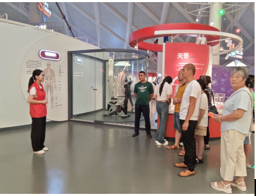 志愿服務(wù)隊(duì)隊(duì)員在生命健康展廳開(kāi)展講解