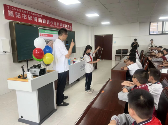 為落實(shí)2025年“全國(guó)科普月”工作計(jì)劃,激發(fā)青少年創(chuàng)新活力,培養(yǎng)科學(xué)素養(yǎng),9月11日至12日,襄陽(yáng)市科技館特邀“湖北省科普大使”楊正波教授先后走進(jìn)襄州區(qū)第九中學(xué)與高新區(qū)鄧城小學(xué),開展了“碩博助推青少年科學(xué)探夢(mèng)”主題活動(dòng)。楊教授通過趣味實(shí)驗(yàn)和互動(dòng)講解,帶領(lǐng)同學(xué)們沉浸式探索物理世界的奧秘,為兩校學(xué)生帶來了一場(chǎng)別開生面的科學(xué)盛宴。