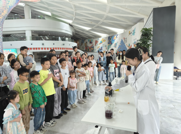 科普劇場內(nèi),“氣體有魔法”“水火不容”“化學(xué)幻彩秀”多個(gè)科普實(shí)驗(yàn)秀輪番上演。將科學(xué)知識融入劇情與實(shí)驗(yàn),通過劇情將抽象知識轉(zhuǎn)化為角色沖突和任務(wù)挑戰(zhàn),通過角色扮演、觀眾互動和趣味實(shí)驗(yàn),讓科學(xué)知識“活”起來。每一場秀都是一次科學(xué)魔法的狂歡!