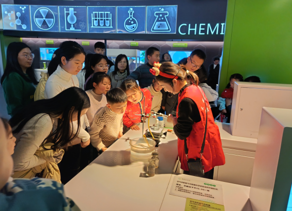 展廳每日定時(shí)開展“皂化反應(yīng)”“氧氣的制備”等經(jīng)典實(shí)驗(yàn),通過動手制作肥皂、觀察氧氣助燃現(xiàn)象,學(xué)習(xí)化學(xué)反應(yīng)原理及日常應(yīng)用,培養(yǎng)科學(xué)探究能力。從實(shí)驗(yàn)臺到生活,科學(xué)就在你我身邊!